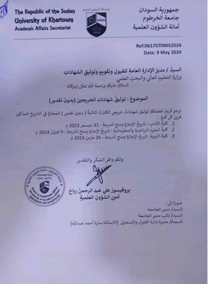 أكدت الوزارة أن قراراتها تهدف لحماية مستقبل الخريجين وسمعة التعليم العالي السوداني، معلنة بدء إلزام المؤسسات بإصدار شهادات بمواصفات تأمينية وحية اعتباراً من مطلع يناير 2026.