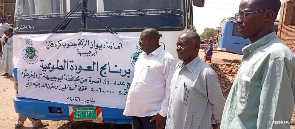 دشنت الزكاة اليوم الاحد الموافق ١١/١/٢٠٢٦م بمقرها بمحافظة ابوجبيهة برنامج العودة إلي الديار حيث بلغت التكلفة (٥٠٠٠٠٠٠) خمسة مليون جنيه