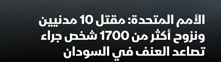 أفاد مكتب الأمم المتحدة لتنسيق الشؤون الإنسانية (أوتشا) ، بمقتل 10 أشخاص على الأقل وإصابة العشرات في هجمات متفرقة، مع نزوح أكثر من 1700 شخص خلال الأيام الماضية، جراء تصاعد العنف في عدة ولايات بالسودان.