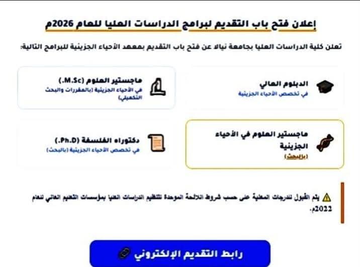 إعلان عن فتح باب التقديم لبرامج الدراسات العليا للعام 2026م 📢